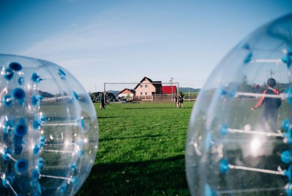 Kültéri füves pálya csak abban az estben ha kellően meg van tisztítva a buborékok számára veszélyesnek minősülő tárgyaktól (kavics, faágak, stb.)